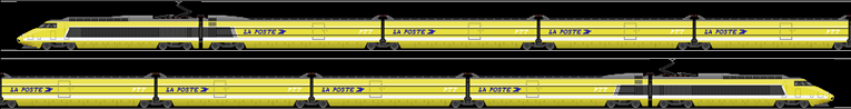 Le moyen terrestre de transport du courrier le plus rapide du monde ! Deux rames, plus une demi-rame de réserve (une troisième a suivi ensuite par tranformation d'une rame TGV PSE).
